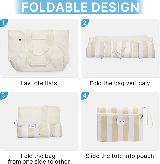 G4Free Beach Bag,Waterproof Beach Tote Pool Bags for Women,Compatible with Stanley Cup,Foldablefor Weekender Travel