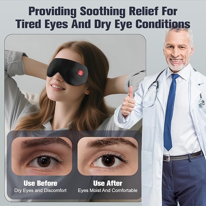 - 【USB-Powered & Auto Safety Shutoff】: Rechargeable via any USB port (e.g., power bank/laptop), or connect to adapter, making this heating eye mask portable for flights or offices. Features 20 minutes auto shutoff for worry-free naps. Perfect for travel, gym, or office use—reusable—unlike disposable masks
