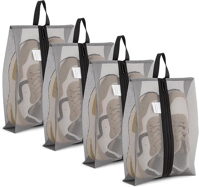 VUSIGN Travel Shoe Bag, Water-Resistant Shoe Pouch for Gym and Sport, Odor-Resistant Soccer Cleats Bag (Gray, 4-Pack)