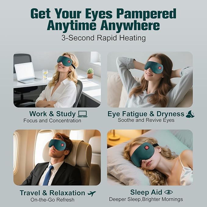 - 【3-Second Rapid Heating Eye Mask】Experience instant warmth upon activation, ideal as an eye heating pad for dry eyes, with graphene technology emitting "life light waves" to penetrate deep into eye muscles, relieving dryness and fatigue while improving blood circulation.
