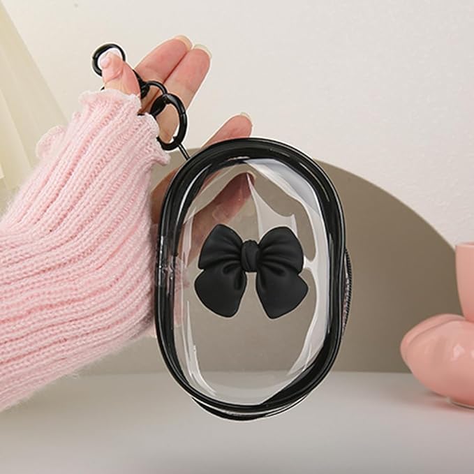 Charging Cable Storage Bag, Cute 3D Bow Tie Waves Design Transparent Compact Travel Cables Carrying Storages Case Electronic Accessories Charger Cord Wire Organizer, Black Bow