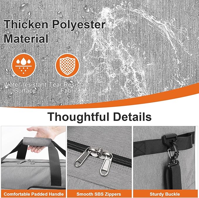 - Comfort & Practical Design: For enhanced comfort, this travel bag features adjustable, removable shoulder straps with foam padding to reduce shoulder strain. The back pocket includes a hook-and-loop strap that attaches to luggage telescopic handles, freeing your hands. Two side handles are added for two-person carrying when the load becomes too heavy or bulky.