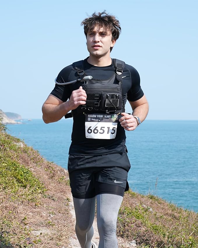 - Durable & Breathable - The front chest pack is made from waterproof and scratch-resistant 900D Oxford fabric, protecting your essentials from rain and sharp objects. The lightweight and breathable mesh backpack enhances air circulation and moisture-wicking. Reflective logo and strip on the front and back improve low-light visibility. This reflective running vest makes every run farther, safer, and more comfortable.