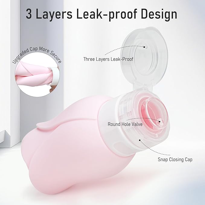- 3-LAYER LEAK PROOF TRAVEL BOTTLE: Upgraded anti-leak cap prevent leaking with external pressure in flight, no drop off, withstand a 100-pound grip squeeze. No need to worry about liquid leakage in bag while traveling.