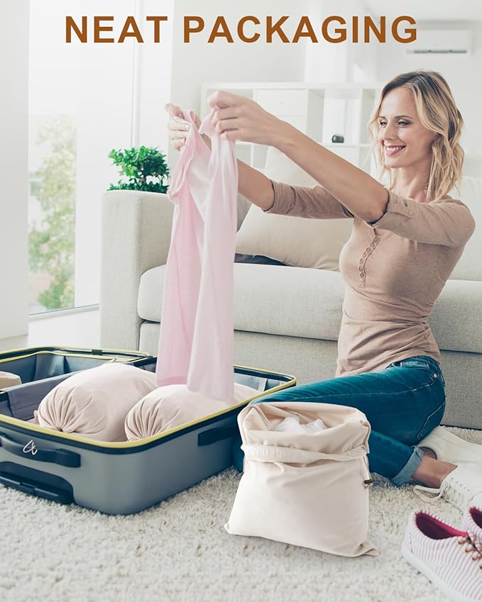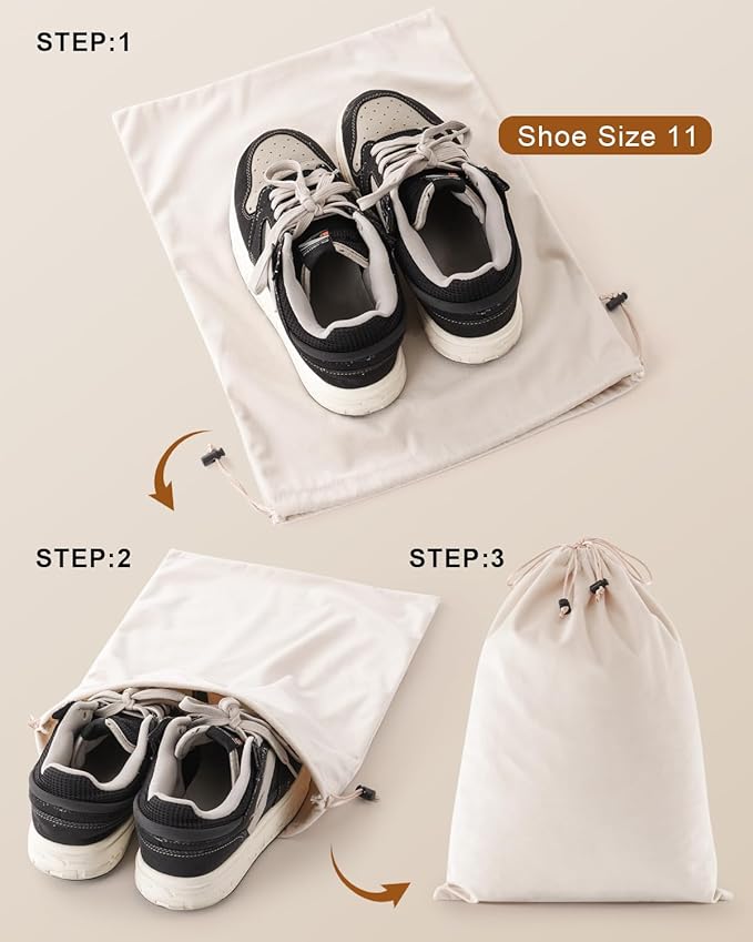 FantasyLife Shoe Bags for Travel, Washable Dust Bags for Storage & Packing, Flannel Shoe Pouch with Drawstring Closure for Purses, Handbags, Shoes & Toys (4, Beige)