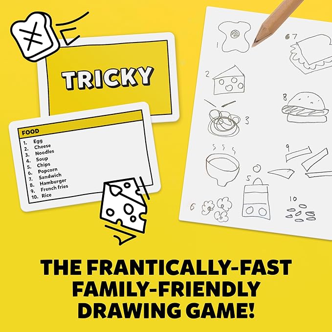 - 1000+ ITEMS TO DRAW ACROSS 100+ CATEGORIES! We’ve crammed a lot of content into a small box with categories ranging from nice and easy (food, animals, body parts) to almost impossible (tourist attractions, animated films, cheeses!)