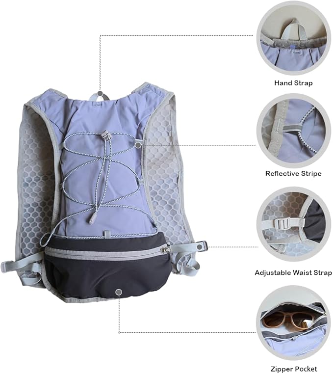 - 【Ultra-Lightweight & Built to Last】 Crafted from high-quality, water-resistant nylon, this hydration vest weighs only 130g (4.6oz), ensuring a barely-there feel. Its ultra-light design minimizes bulk and eliminates bounce, allowing for complete freedom of movement during trail running, hiking, cycling, marathons, or camping.