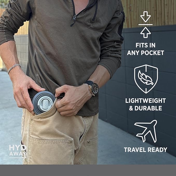 - COLLAPSIBLE & COMPACT DESIGN: Folds down to just 1.5 inches when empty - perfect for travel, backpacks, gym bags, and minimalist lifestyles.
