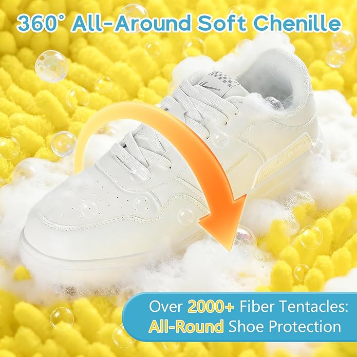 - Better Cleaning: Chenille Microfiber + Shoe Brush: Worried about scratching your sneakers while cleaning? Our sneaker washing bag is lined with soft chenille microfiber (delivering a 360° gentle yet deep clean, just like top options). The extra shoe brush targets tough stains and hard-to-reach spots. Transfer the bag from washer to dryer easily—enjoy professionally clean, dry shoes at home.