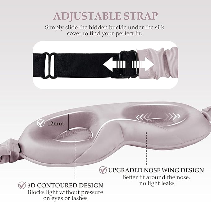 - 【100% Total Light Blockage】The SGMSILK silk sleep mask features a 6-layer construction, including two additional light-blocking layers for complete darkness. Its upgraded nose cutout design perfectly conforms to all nose shapes, effectively sealing out all light. Whether you're taking a midday nap or settling in for a full night’s rest, this mask provides the ideal dark environment for deep, uninterrupted sleep