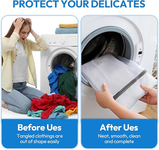 - CONVENIENT ZIP DESIGN - This delicate laundry bag with rustproof zip and protective cover. rust-resistant, durable and sturdy, smooth zipper with auto lock and smart zipper protection will prevent the bag from opening during washing and drying cycle. You’ll have a new quiet and a snag-free laundry experience.