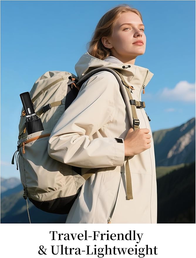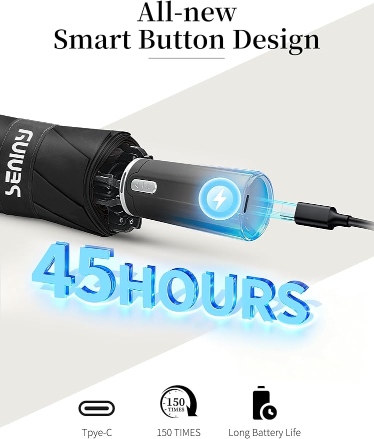 - 【Intelligent Open & Close】The electric small umbrella makes life easier. Press a corresponding button to open/close it effortlessly. Especially, the pole features a unique design - others press hard, ours auto-folds. The upgraded Type-C charging port of the mini umbrella supports long battery life (150 uses/charge) and includes a charging cable.