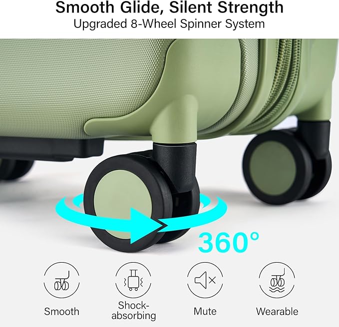 - Smooth Wheels & Reinforced Zippers: The large suitcases with wheels glide effortlessly with precision 360° rotation and thickened TPE skin, performing quietly across airports, carpets, and cobblestone streets. Reinforced 5-strand explosion-proof zippers ensure smooth closure and prevent bursting under heavy loads