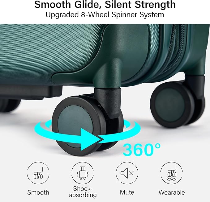 - Smooth Wheels & Reinforced Zippers: The large suitcases with wheels glide effortlessly with precision 360° rotation and thickened TPE skin, performing quietly across airports, carpets, and cobblestone streets. Reinforced 5-strand explosion-proof zippers ensure smooth closure and prevent bursting under heavy loads