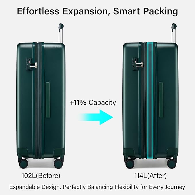 - Smart Expansion for 11% Extra Capacity: The expandable zipper adds up to 12L extra space, making this big suitcase a versatile choice for longer trips or seasonal travel. Pair with our 16", 20", 24", or 26" expandable suitcases with wheels to complete your travel set
