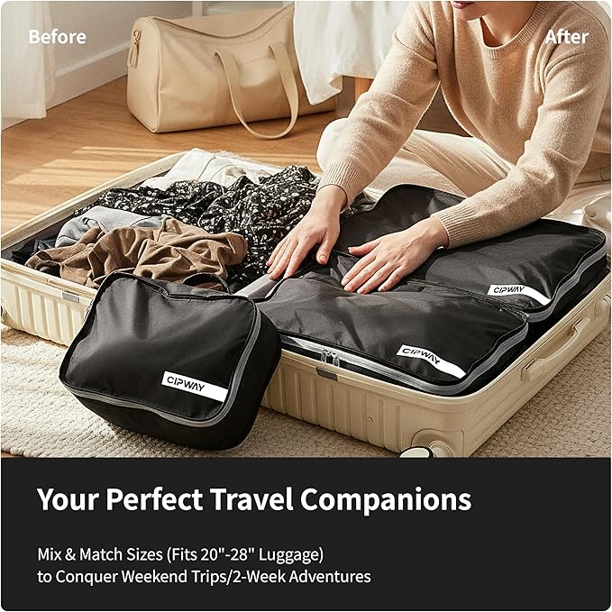 Cipway 5 Set Packing Cubes for Travel Suitcase Organizer for Accessories Luggage Carry On Suitcase Lightweight Black