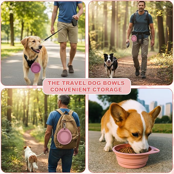 - 【Collapsible Dog Bowl Design】This silicone collapsible dog bowls are designed for space saving, easy to expand and fold away, portable and handy. The collapsible dog water bowl are great for traveling, hiking, walking, parking and camping with your dogs, cats and pet. Collapsible water bowl for dogs slip it into your backpack, car, or pocket effortlessly