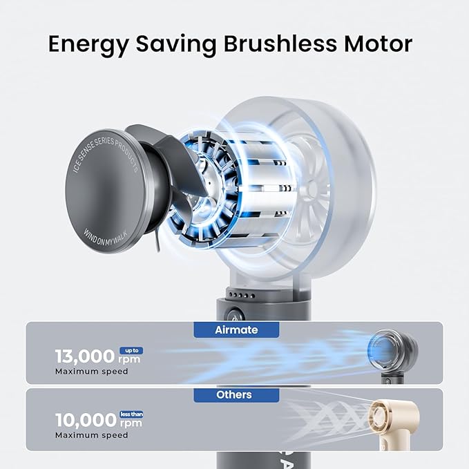 - 【Ultra-High-Speed Brushless Motor】: Stay cool instantly with advanced brushless motor, spinning at a blazing 13,000 RPM—up to 3× faster than typical handheld fans. It delivers a powerful, consistent airflow of up to 9.5 m/s, making it perfect for commuting, outdoor work, or quick cooling during makeup or lash applications. Built for speed and reliability, this fan provides rapid relief whenever you need it most
