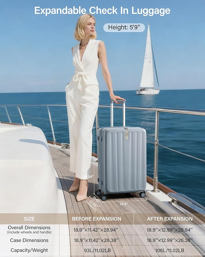 - 【Superior Durability with Reliable Scratch-Resistant Protection】The large luggage made of high-quality impact-resistant PC material, paired with a diamond-textured surface that effectively resists scratches and impacts . Complemented by sturdy explosion-proof zippers, you can rest assured even when the case is fully packed — provide comprehensive protection for your baggage, capable of withstanding various bumps during travel while maintaining its elegant appearance for years