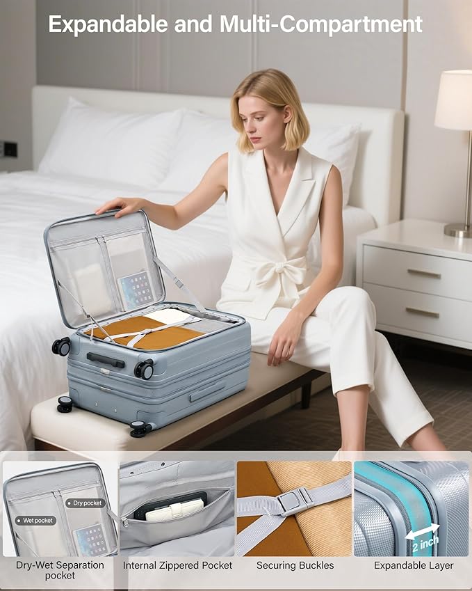 - 【Expandable Luggage】The hard case luggage with expandable design can increase storage space by up to 2", flexibly meeting your needs. The rolling suitcase features a deep, integrated main compartment and multiple storage compartment , so you can safely store large items while keeping all your belongings in their proper places, neat and orderly. We belive this travel suitcase will create a stress-free, organized packing experience for you