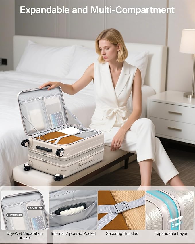 - 【Expandable Luggage】The hard case luggage with expandable design can increase storage space by up to 2", flexibly meeting your needs. The rolling suitcase features a deep, integrated main compartment and multiple storage compartment , so you can safely store large items while keeping all your belongings in their proper places, neat and orderly. We belive this travel suitcase will create a stress-free, organized packing experience for you
