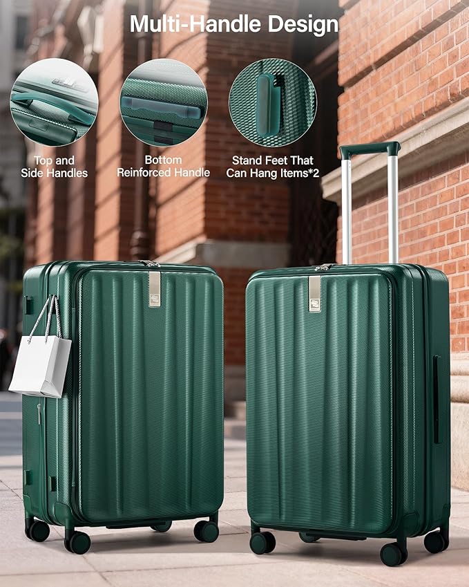 - 【8 Silent Spinner Wheels & Multiple handles for Effortless Mobility】Large suitcases with wheels is enabling smooth and quiet rolling on all surfaces, from cobblestones and carpets to airport floors. Paired with top,side and bottom reinforced handle and a sturdy multi-level adjustable aluminum alloy telescopic handle,you can easily lifted up or find a comfortable grip height for stable, effortless pulling or pushing — rolling luggage letting you move with ease throughout your journey