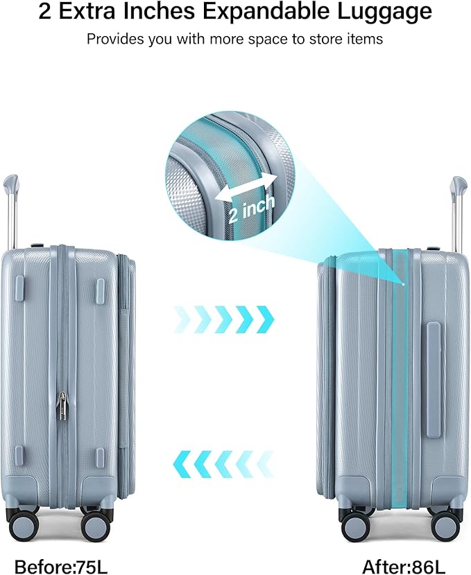 - 【Expandable Luggage】The hard case luggage with expandable design can increase storage space by up to 2", flexibly meeting your needs. The rolling suitcase features a deep, integrated main compartment and multiple storage compartment , so you can safely store large items while keeping all your belongings in their proper places, neat and orderly. We belive this medium suitcase will create a stress-free, organized packing experience for you