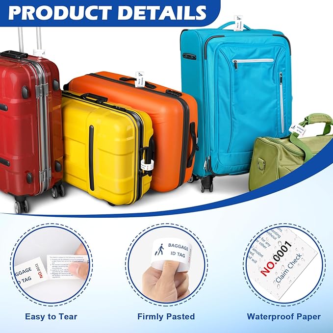- 【High-Quality Material】Our baggage claim tags are made from durable, waterproof synthetic paper. Information is printed in clear, fade-resistant ink with bright consecutive numbers. This attractive design ensures durable, easily legible information, making baggage claim checks tags simple in busy airports or train stations.Note: Please use a ballpoint pen instead of a water-based pen to avoid blurring the markings.