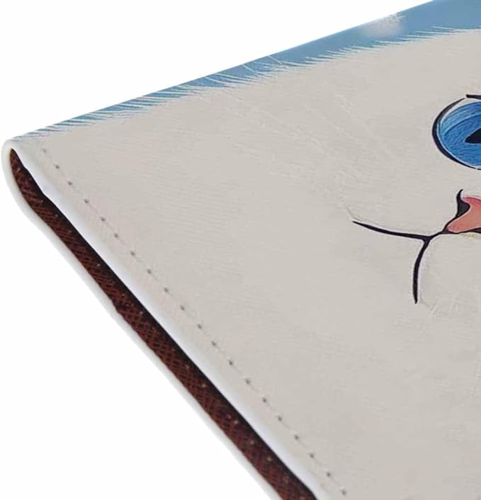 Cat Passport Holder for Travel White Cat with Blue Eyes PU Leather Passport Cover Wallet Cute Passport Card Holder for Women and Men