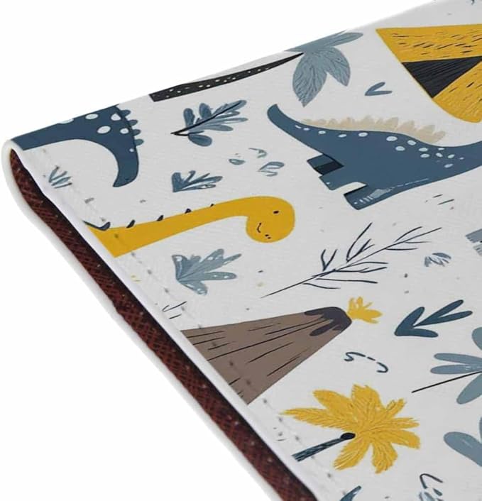 Childish Dino Passport Holder for Travel Creative Cartoon Dinosaur PU Leather Passport Cover Wallet Cute Passport Card Holder for Women and Men
