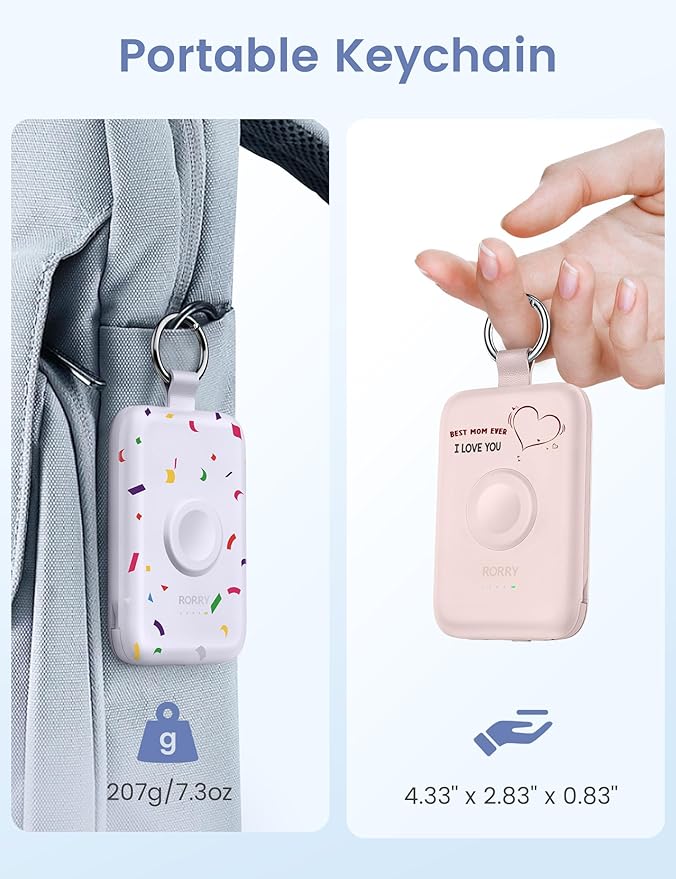 RORRY Portable Charger, 10000mAh PD 20W Fast Charging Portable Charger Power Bank with Built in Cables, Travel Battery Pack for iPhone 17/16/15/14/13/12 and Apple Watch Ultra/11/10/9/8/7/6/5, Mom-Pink