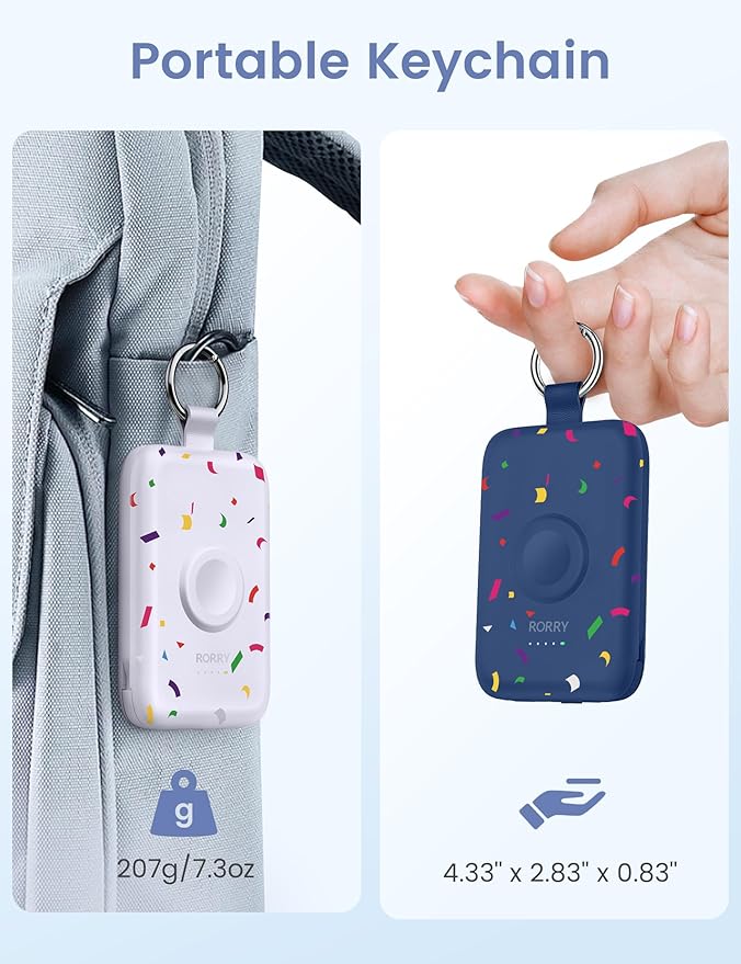 RORRY Portable Charger, 10000mAh PD 20W Fast Charging Portable Charger Power Bank with Built in Cables, Travel Battery Pack for iPhone 17/16/15/14/13/12 and Apple Watch, Confetti-Deepblue