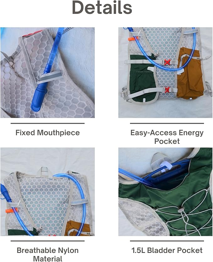 - 【Ultra-Lightweight & Built to Last】 Crafted from high-quality, water-resistant nylon, this hydration vest weighs only 130g (4.6oz), ensuring a barely-there feel. Its ultra-light design minimizes bulk and eliminates bounce, allowing for complete freedom of movement during trail running, hiking, cycling, marathons, or camping.