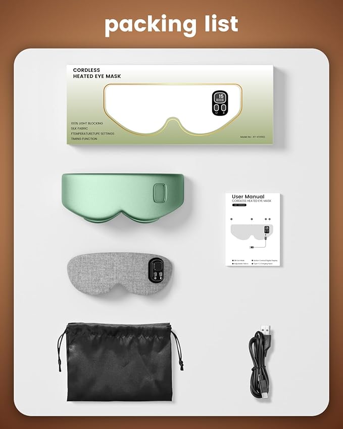- 【True Cordless Freedom】Our heated eye mask goes beyond traditional wired design, saying goodbye to tangled cables and restraints. The 1500mAh battery provides up to 90 minutes of soothing warmth after a 1.5-hour charge. Whether traveling, taking a nap in the office, or using it before bed, you can enjoy heat therapy anytime, anywhere to relieve eye fatigue.