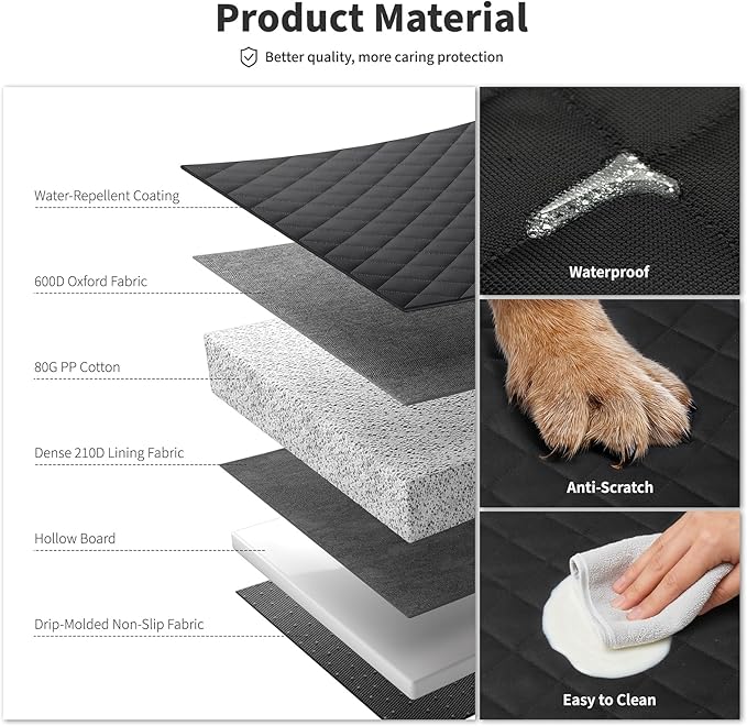 HOTEAGLE Dog Seat Covers for Back Seat, Hard Bottom Back Seat Extender for Dogs, 600D Upgraded Material Waterproof and Comfortable with 400lbs Holds, Ideal for Car Trips and Outdoor Adventures(Black)