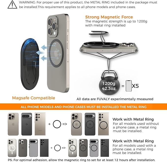 - 【Usage Recommendation】For optimal magnetic adhesion, the included magnetic enhancement ring must be used with all phones - regardless of whether they have built-in MagSafe compatibility or are used with a protective case.