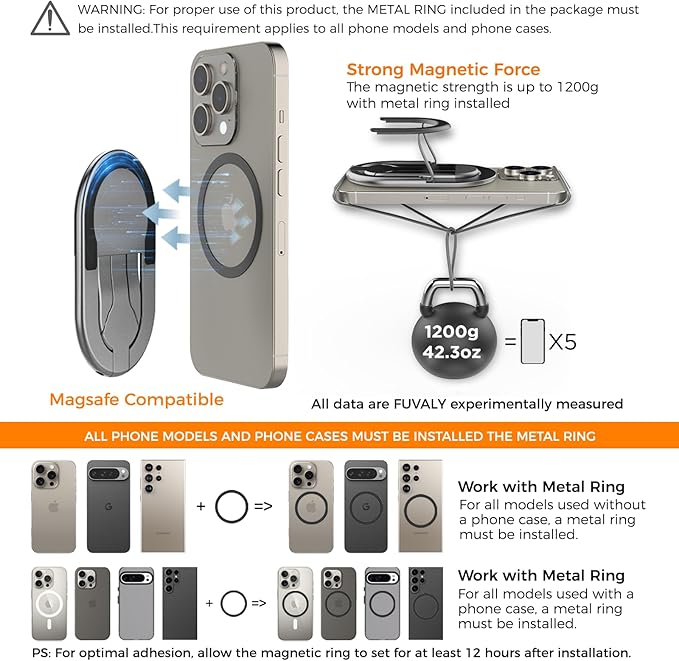 - 【Usage Recommendation】For optimal magnetic adhesion, the included magnetic enhancement ring must be used with all phones - regardless of whether they have built-in MagSafe compatibility or are used with a protective case.