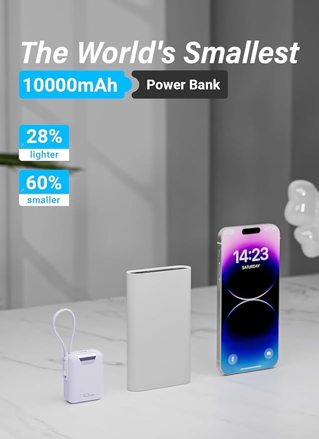 - 🔋【Ultra Compact 10000 mAh Powerbank】Small in size but big in power, this 10000mAh portable charger fits easily into your pocket or bag. Size only 2.7x1.1x2.2inches, perfect for travel, commuting, or emergencies without adding bulk to your daily carry