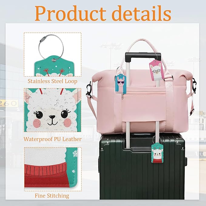 Alpaca Luggage Tags for Suitcase 3 Pack, Leather Bag Tags Identifiers with Privacy Name Address Labels and Durable Steel Loop for Men Women Backpack