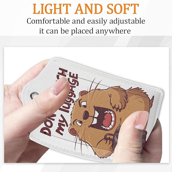 Capibara Luggage Tags for Suitcases, 3 Pack Leather Bag Tag Identifiers with Stainless Steel Loop and Address Card for Men Women
