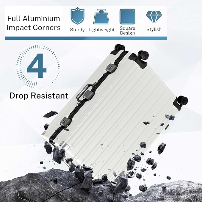 - 【Aluminum Frame Luggage】 We include 70% PC for high quality. PC is durable and strong to protect belongings. 70% Strong (PC) + 30% Light(ABS) makes it lighter,while reinforced aluminum frame provide added durability for demanding travel. The sturdy suitcase protects belongings even with rough handling.