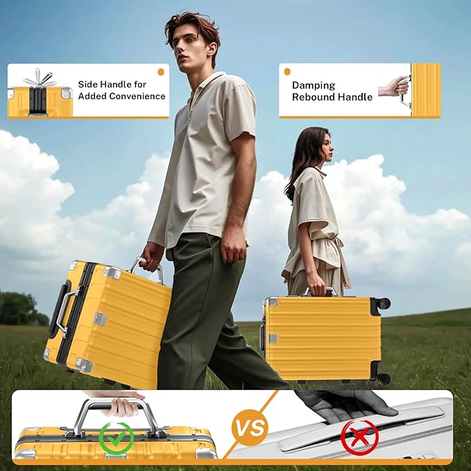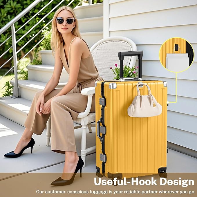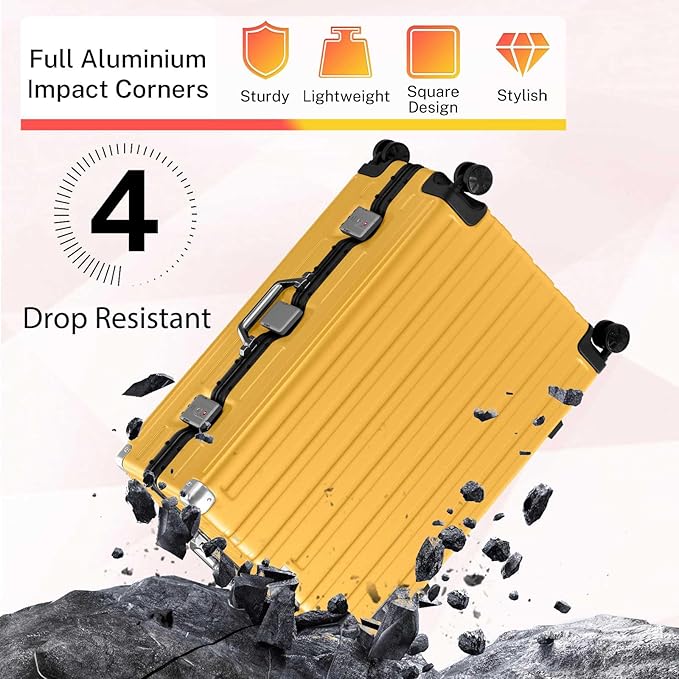 - 【Aluminum Frame Luggage】 We include 70% PC for high quality. PC is durable and strong to protect belongings. 70% Strong (PC) + 30% Light(ABS) makes it lighter,while reinforced aluminum frame provide added durability for demanding travel. The sturdy suitcase protects belongings even with rough handling.