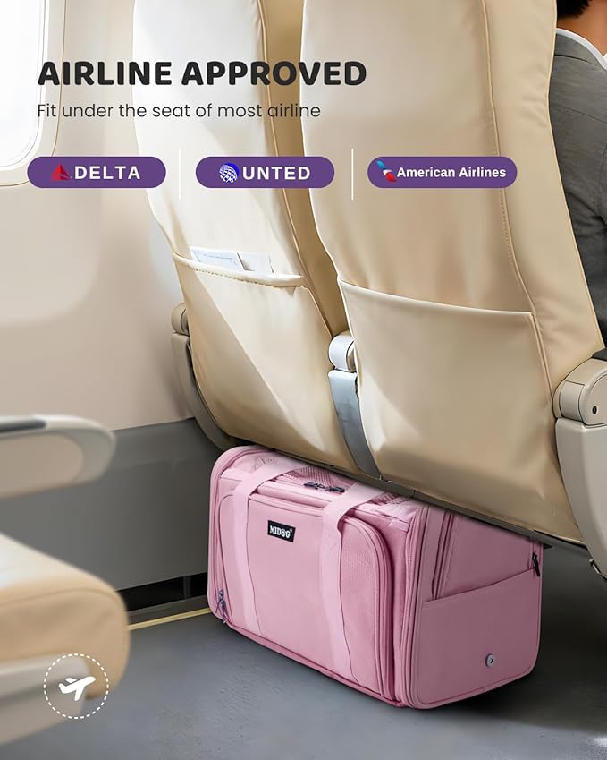 MIDOG Cat Carrier Soft, TSA Approved Airline Travel Carrier for Cats and Small Dogs, Under Seat Pet Bag with Expandable Space & Escape-Proof Zippers (Coral)
