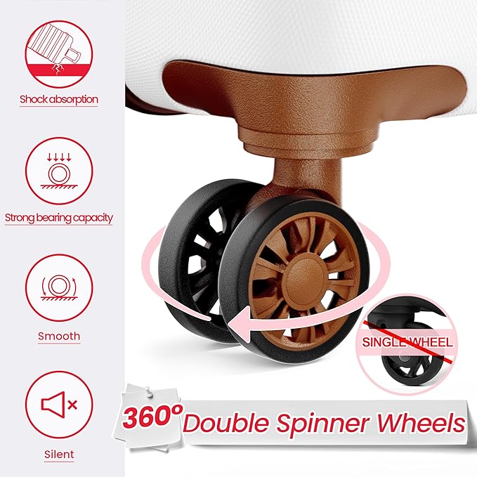 - Dual Spinner Wheel Design: The 4 360° silent dual spinner wheels easily change the direction of move without much effort, moving smoothly through crowded streets, train stations or airports, enhancing your travel experience.