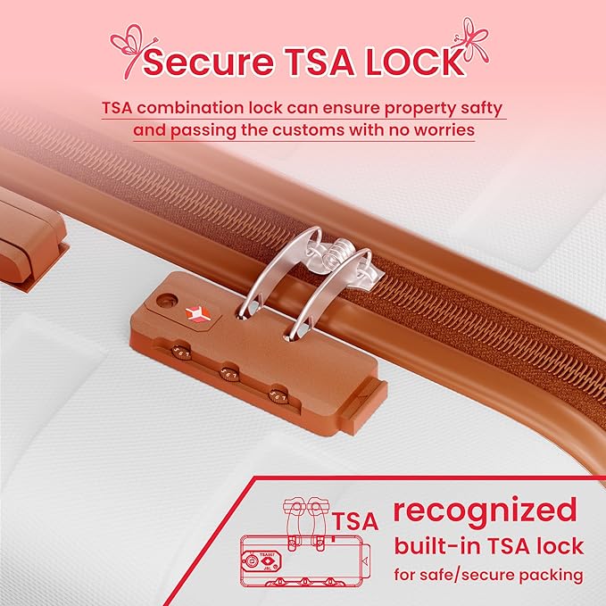 - Secure TSA Lock: The TSA lock can be easily unlocked by simply pressing the button, making it convenient for customs to quickly check your suitcase. Explosion-proof zip and TSA lock are used together, sturdy and durable, greatly protecting your privacy.