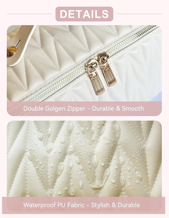 Travel Makeup Bag for Women, Large Capacity Cosmetic Bags for Girls, Compact Pouch Make up Organizer, Waterproof Toiletry Bag with Divider and Handle (White)