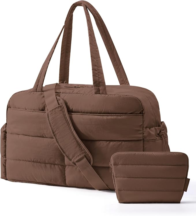 BAGSMART Gym Bag for Women, Lightweight Puffer Duffle Bag 2-PC Travel Bag, 31L Weekender Overnight Bag Quilted Carry On Tote Bag, Diaper Hospital Dance bag for Travel, Gym, Water Resistant