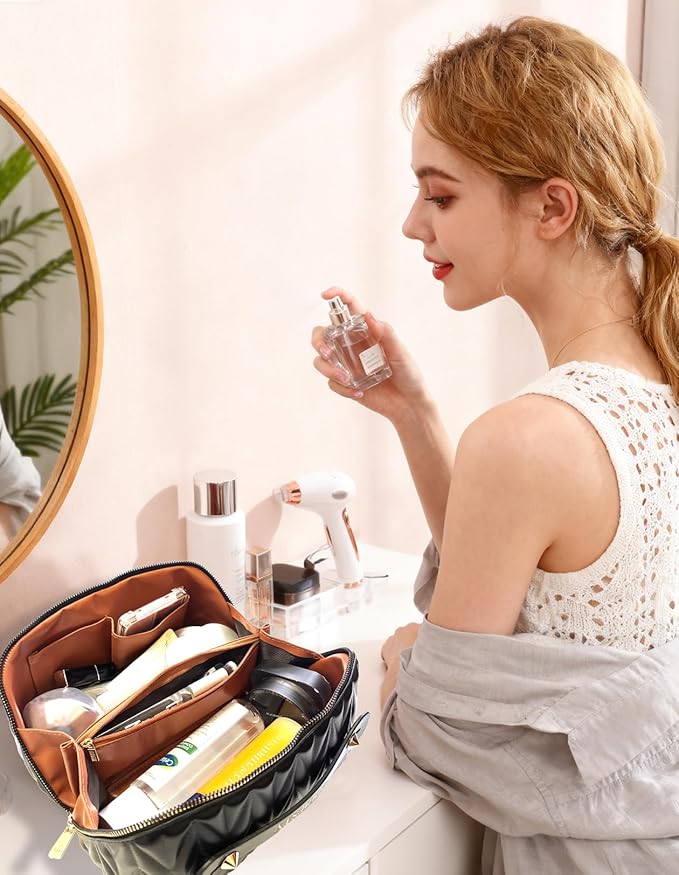 - Spacious Design: Measuring 9.8 x 4.7 x 4.7 inches, this cosmetic bag features built-in pockets for neatly organizing makeup and toiletries.