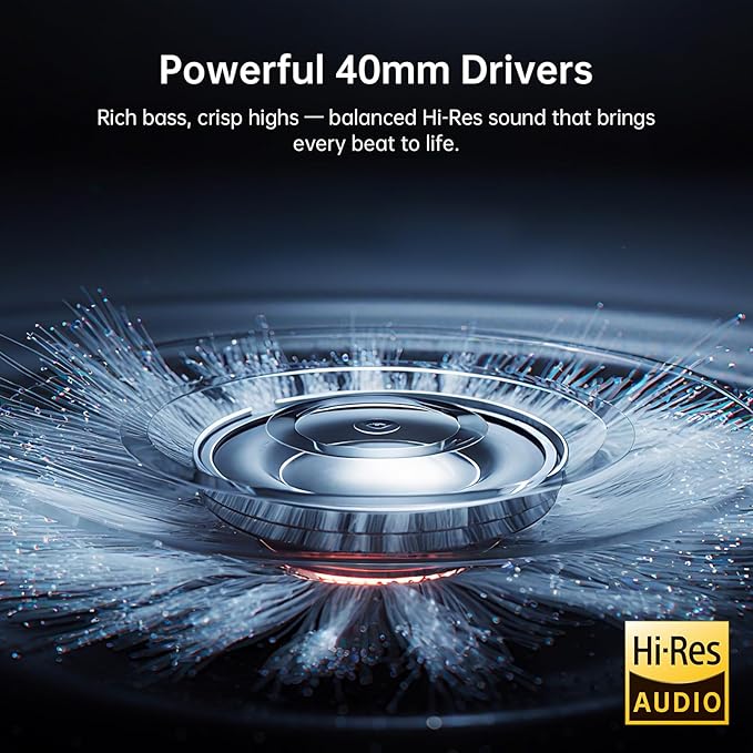 - 【Crystal-Clear Sound, Dual Dynamic Drivers】Feel the deep bass, clear mids, and crisp highs from dual large 40mm drivers. Whether you’re listening to music, watching movies, or gaming, the P300 anc headphone delivers studio-quality audio with zero ear fatigue.