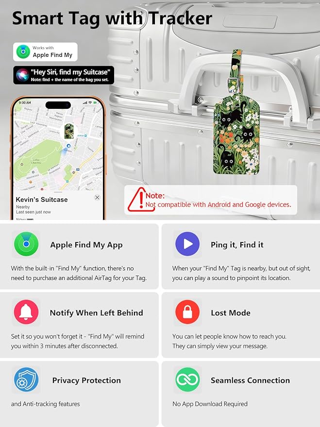 - 🎄🎁💝Find My Location Tracking: Built-in Find My feature works seamlessly with Apple devices to track your luggage in real-time. Offering real-time tracking, proximity alerts, left-behind remind and global location sharing—no additional app required. Perfect for iPhone, iPad, iWatch and Mac users. Note: Android devices are not supported.